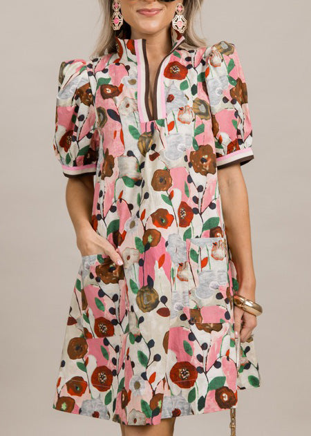 Floral Print 3/4 Sleeve Panel Maxi Dress