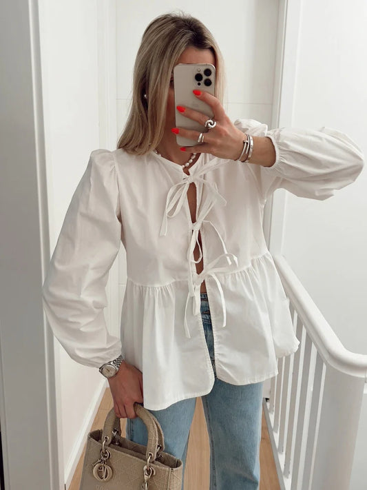 Blouse With Bows And Long Sleeves