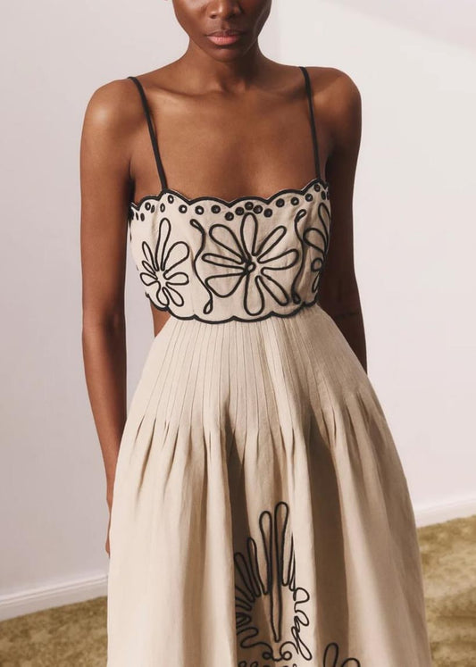 Exquisite Embroidered V-Neck Slim Midi Dress