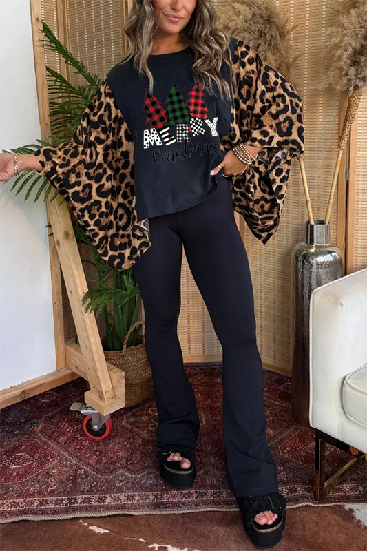 Christmas Tree Print Bat Sleeve T-shirt (no Back Pocket)