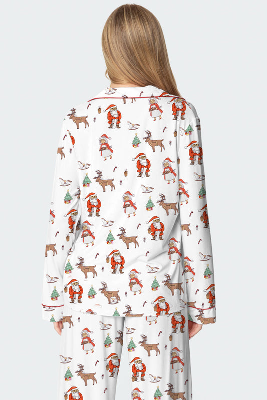 Women's Santa Christmas Satin Lapel Neck Pajama Set