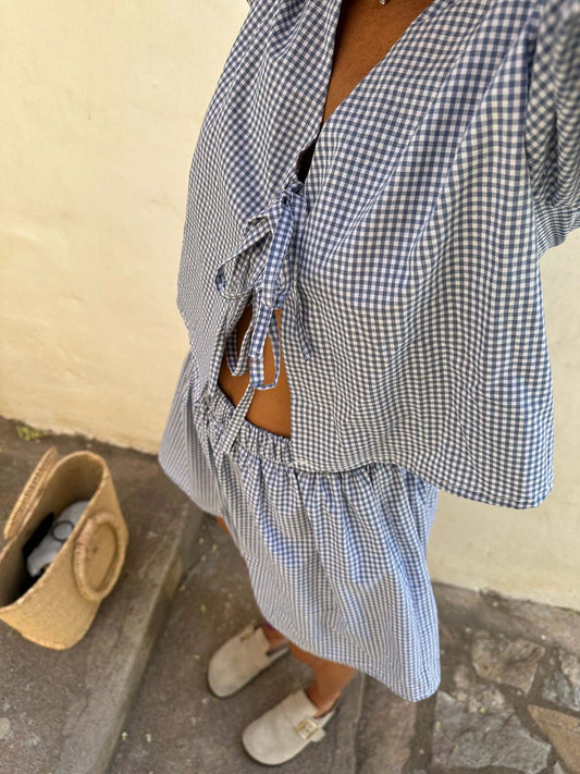 Women's Plaid Lace-up Elastic Waist Shorts Set
