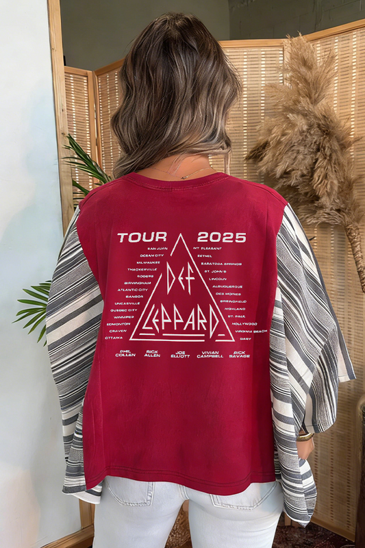 Def Leppard Band Print Bat Sleeve T-Shirt (No Back Pocket)