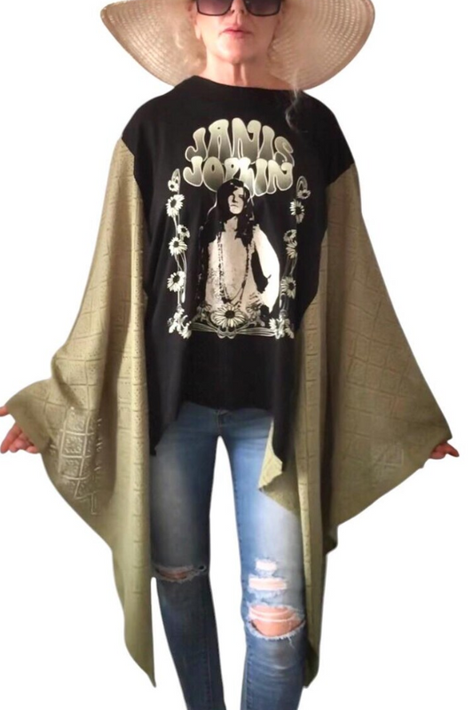 Janis Joplin Printed Bat-Sleeve T-Shirt (No Back Pocket)