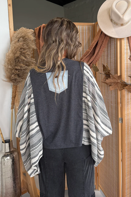 Dice And Flame Print Bat Sleeve T-shirt (with Pocket)