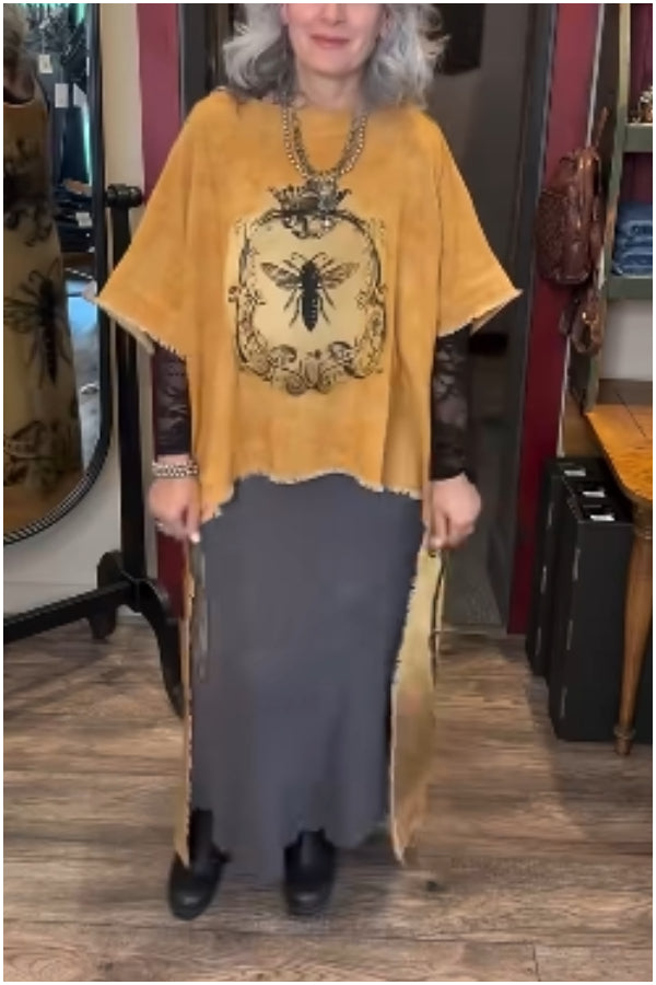 With its breezy lightweight fit, raw edge detailing, and whimsical front appliqué patch, this tunic blends comfort with creativity. The flattering hi-lo hem adds movement and flow — perfect for festivals, brunch dates, or just living your boldest life.