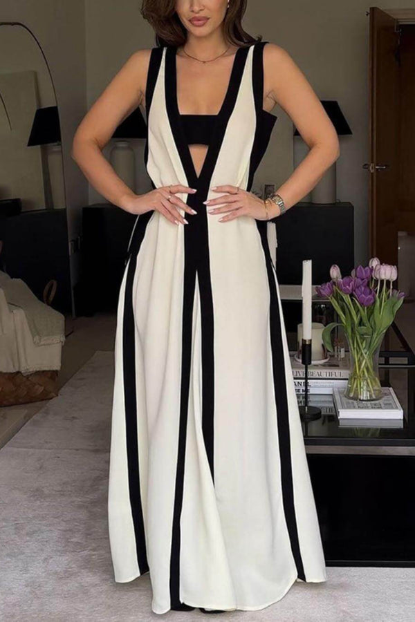 Cette robe chic présente un design à épaules dénudées et un motif patchwork vibrant pour un look élégant. La silhouette sans manches vous gardera au frais pendant les journées chaudes, tandis que la longueur maxi ajoute une touche d'élégance. Parfaite pour une sortie décontractée ou une excursion à la plage, cette robe est un incontournable pour votre garde-robe par temps chaud.