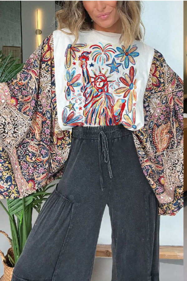 Washed Vintage Graphic Tee with Batwing Sleeve