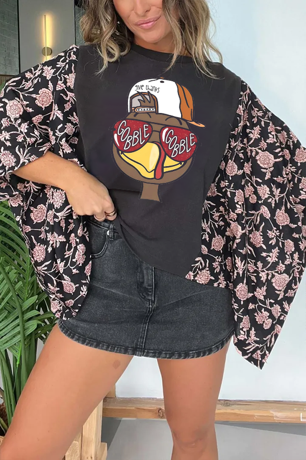 Thanksgiving Trend Turkey Print Tee (No Patch)