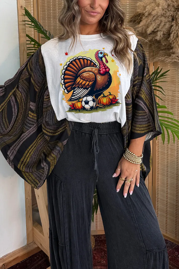 Thanksgiving Turkey Fun Print T-Shirt (No Patch)