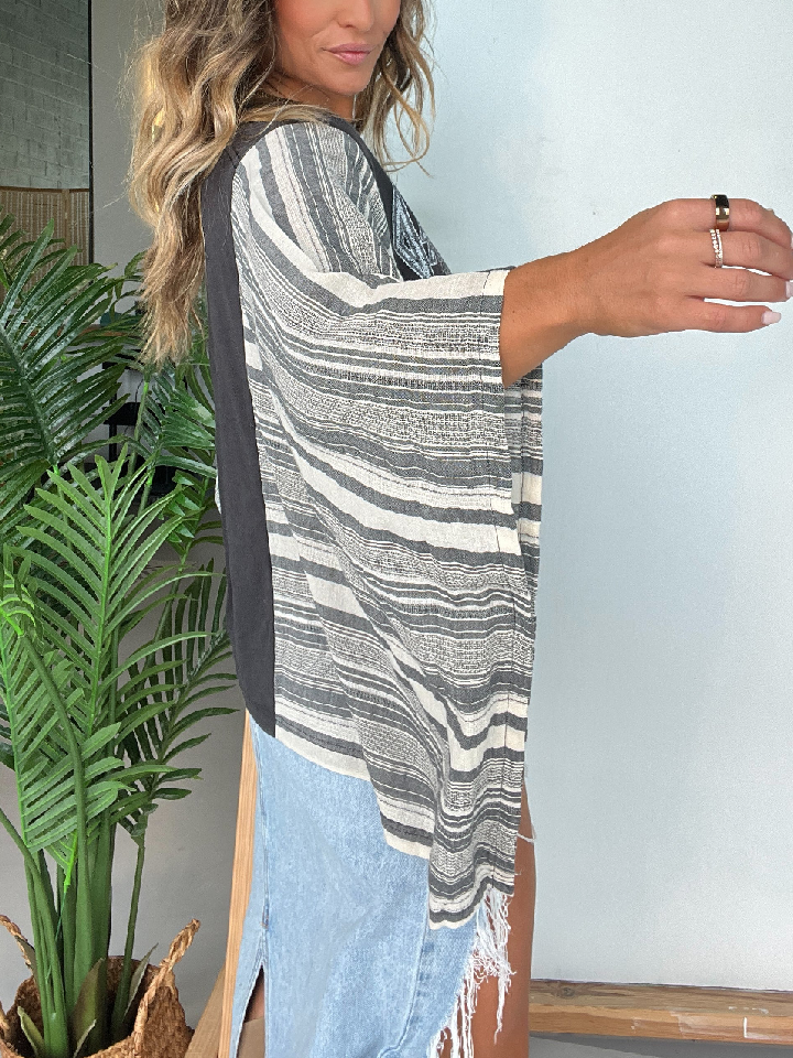 Washed Vintage Graphic Tee with Batwing Sleeve