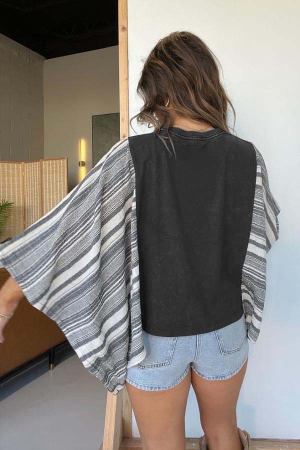 Washed Vintage Graphic Tee with Batwing Sleeve