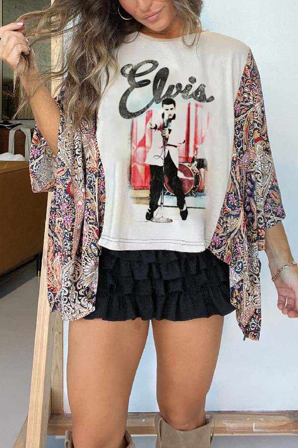 Washed Vintage Graphic Tee with Batwing Sleeve