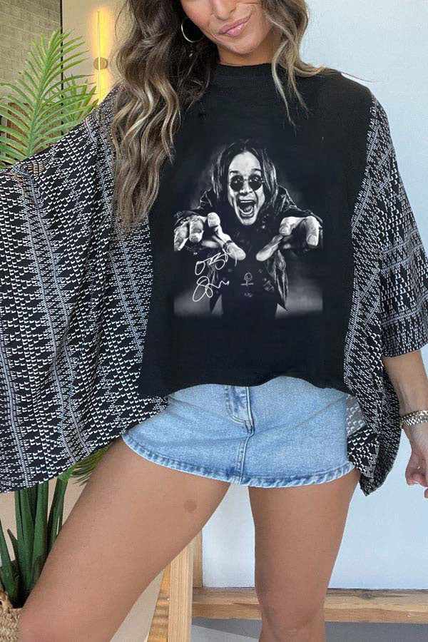 Washed Vintage Graphic Tee with Batwing Sleeve