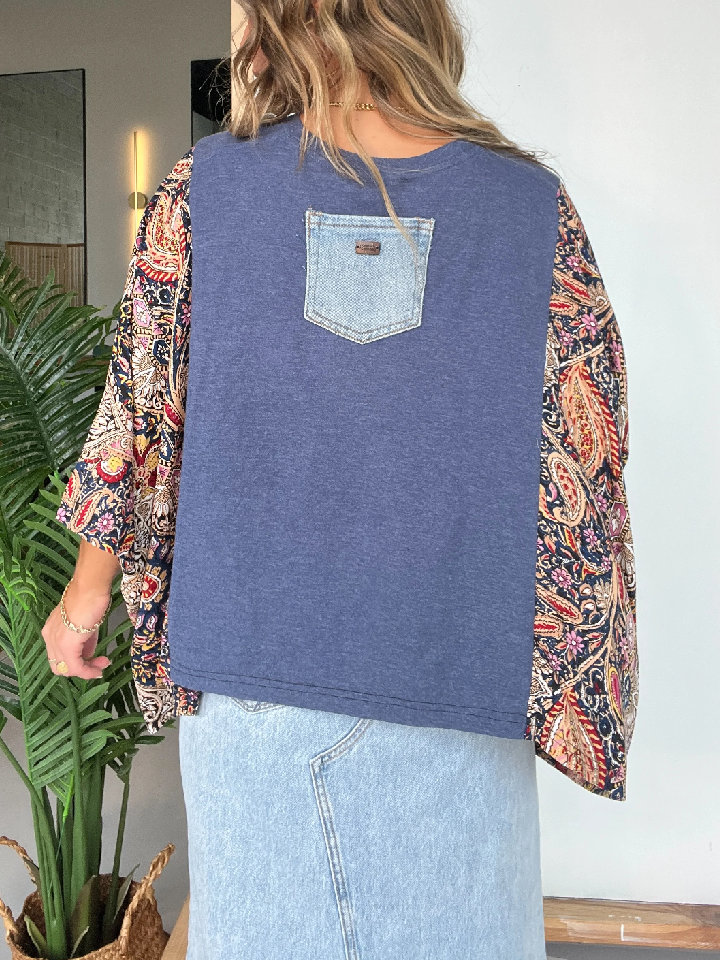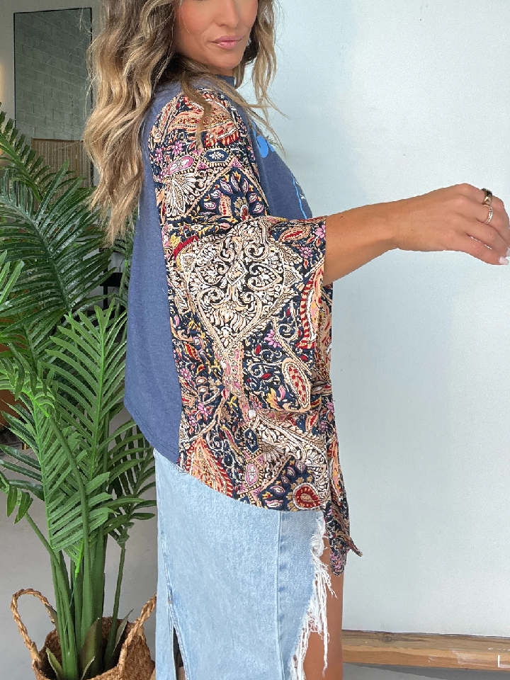 Washed Vintage Graphic Tee with Batwing Sleeve