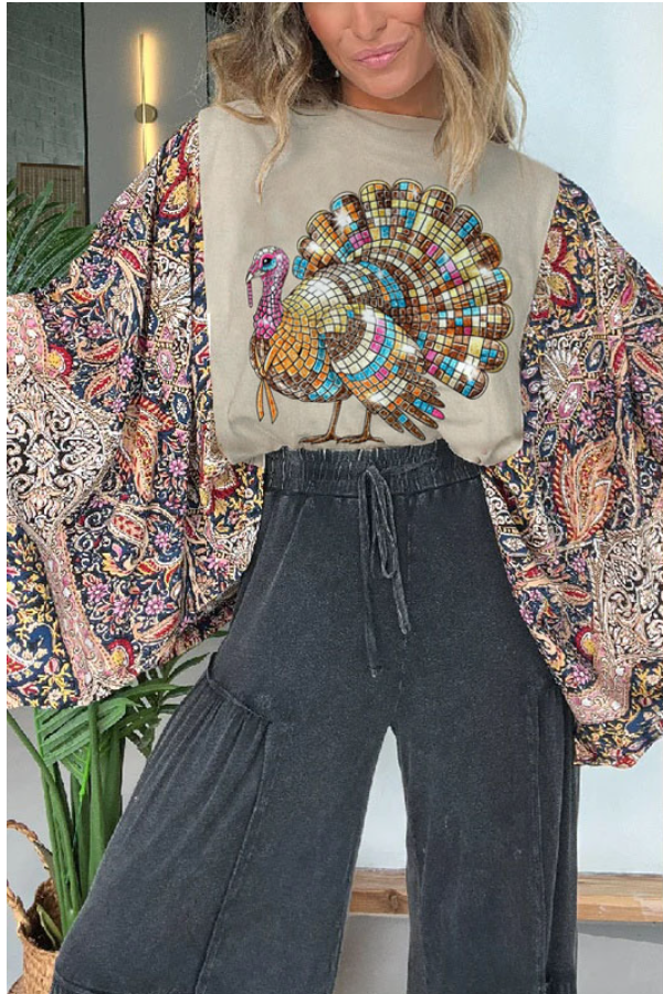 Washed Vintage Graphic Tee with Batwing Sleeve