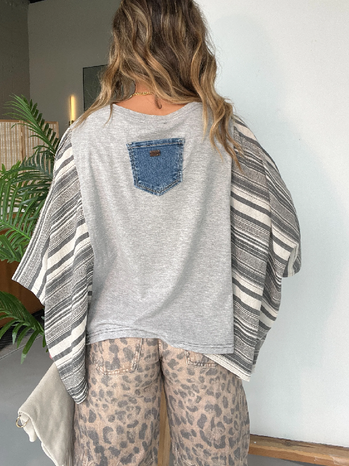 Washed Vintage Graphic Tee with Batwing Sleeve