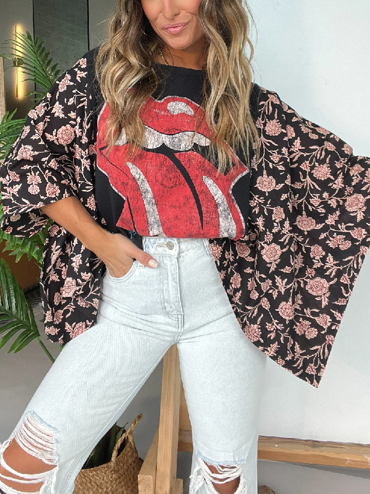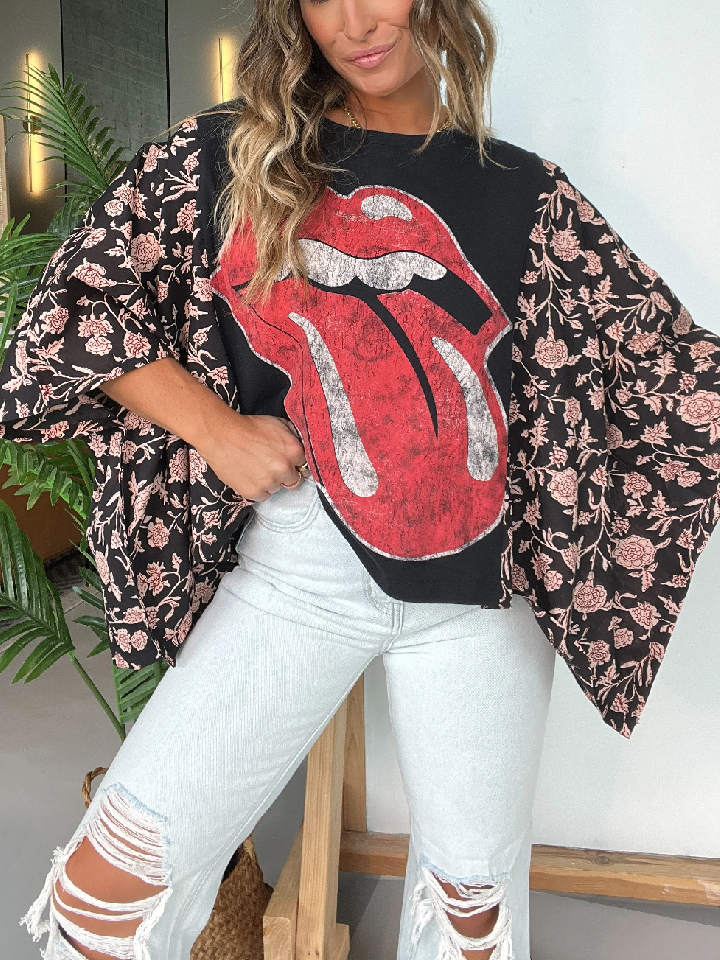 Washed Vintage Graphic Tee with Batwing Sleeve