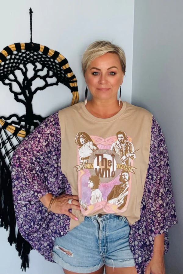 Washed Vintage Graphic Tee with Batwing Sleeve