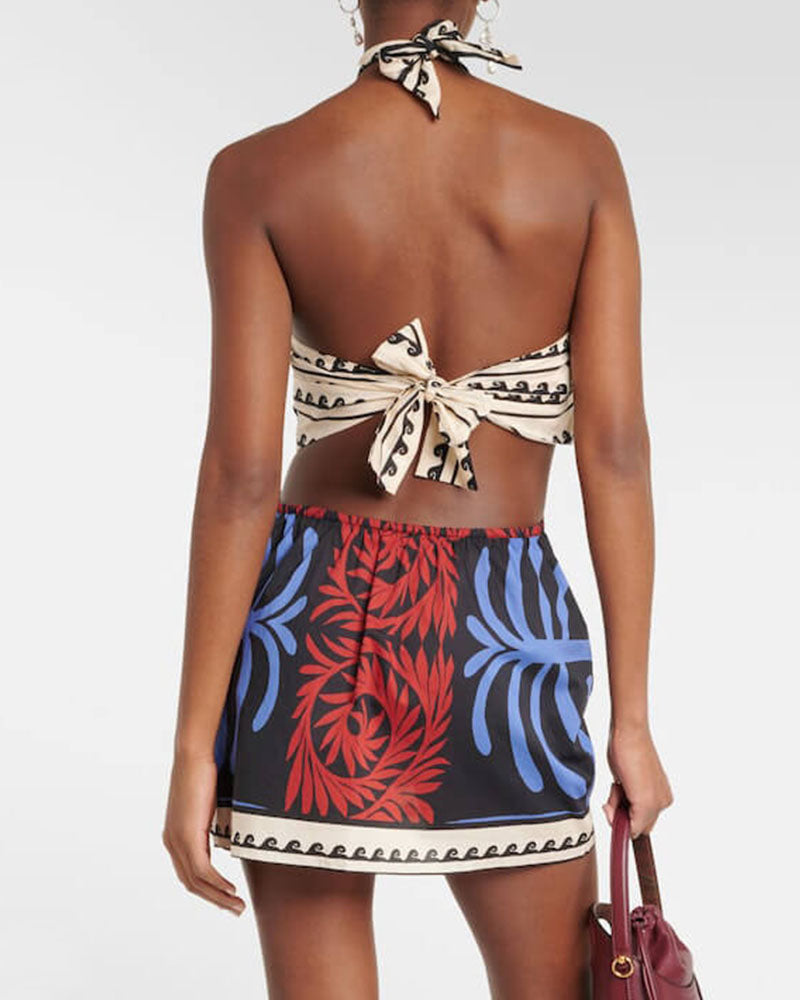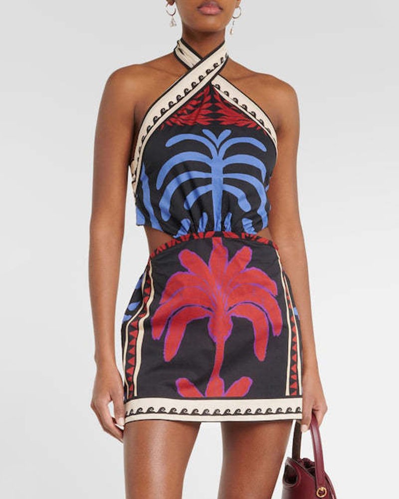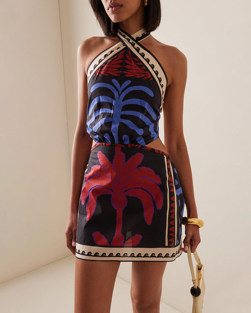 Vacation sexy halterneck printed dress