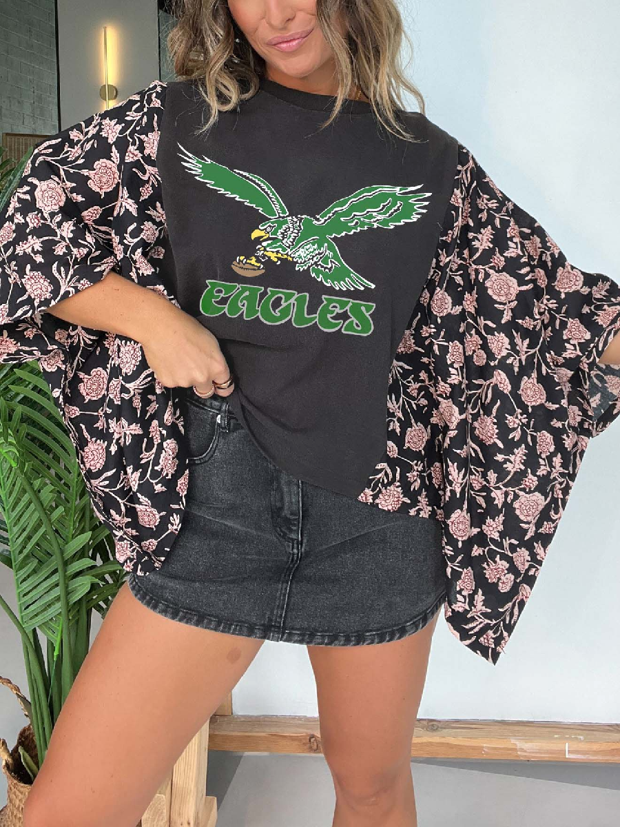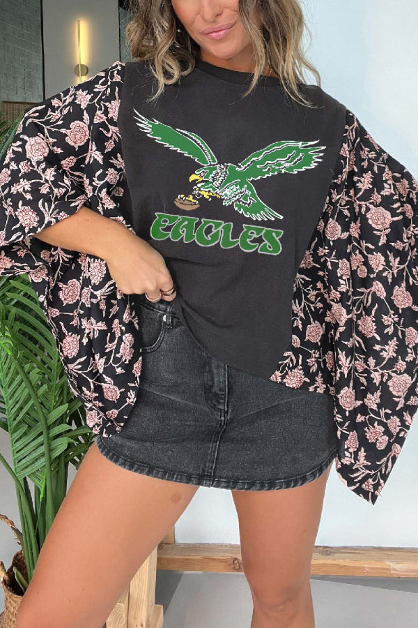 Washed Vintage Graphic Tee with Batwing Sleeve