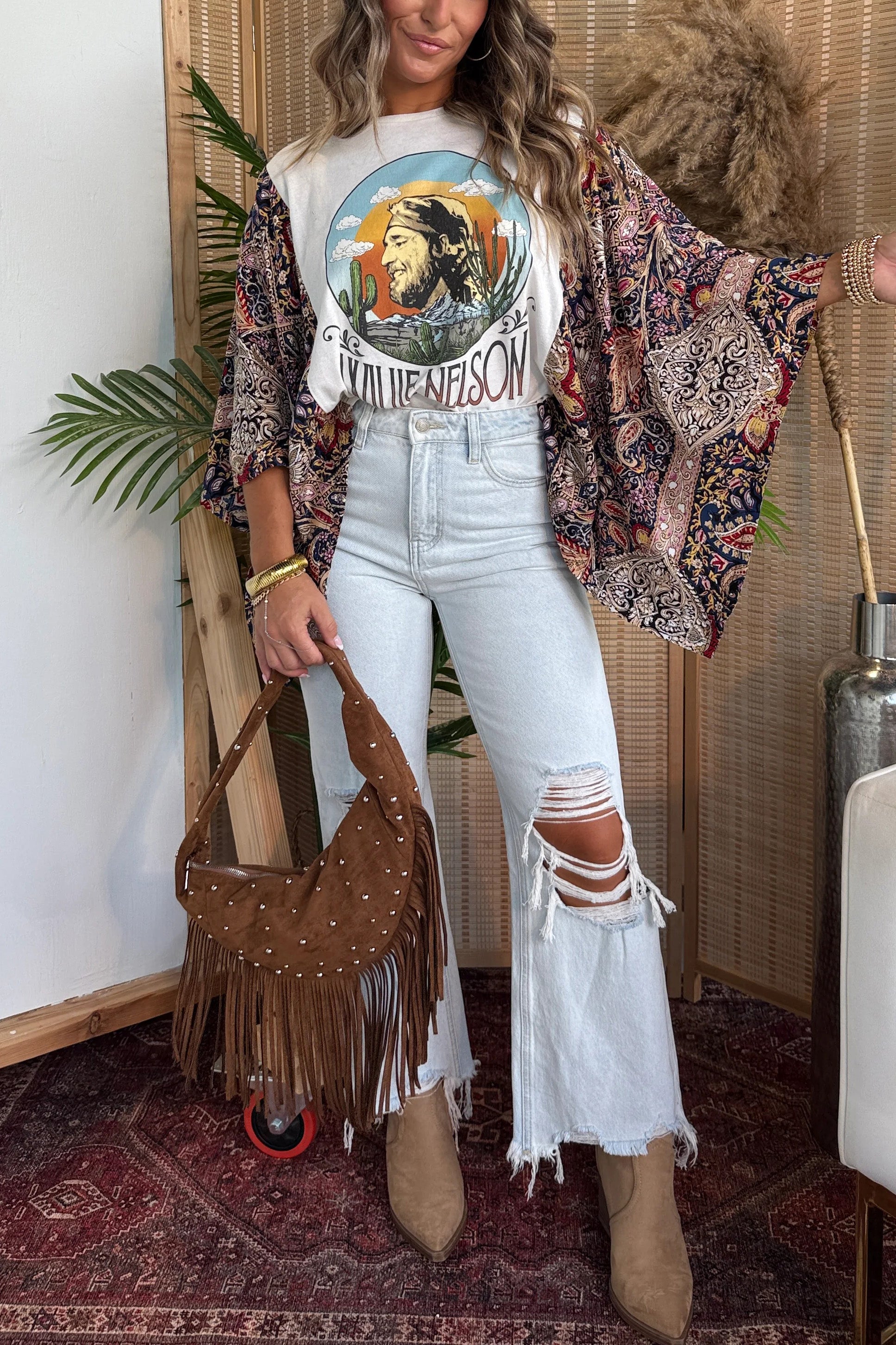 Washed Vintage Graphic Tee with Batwing Sleeve